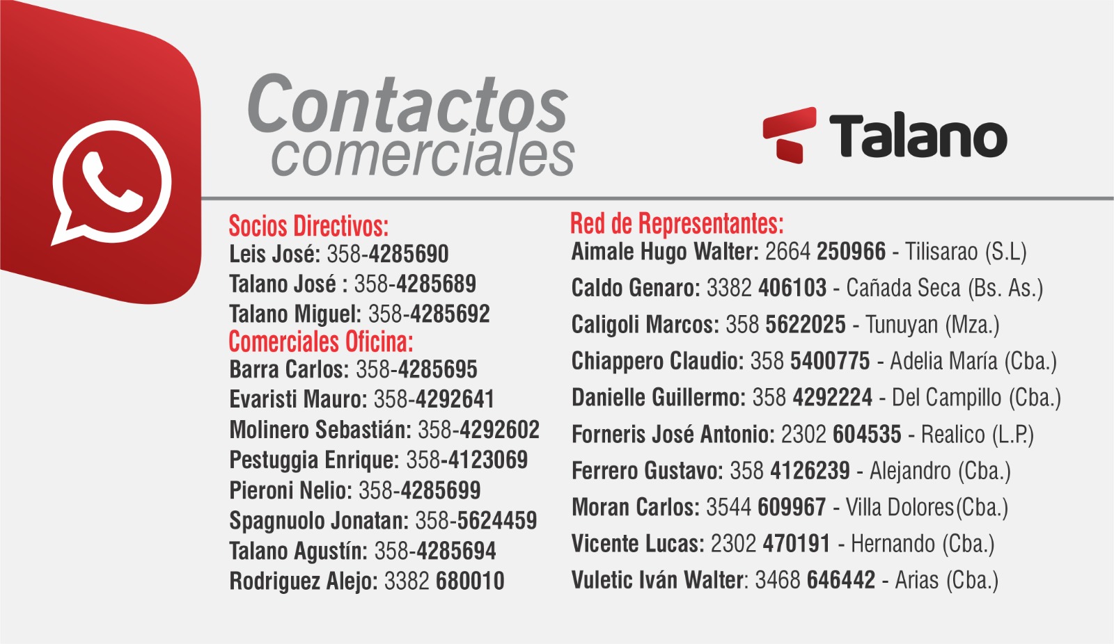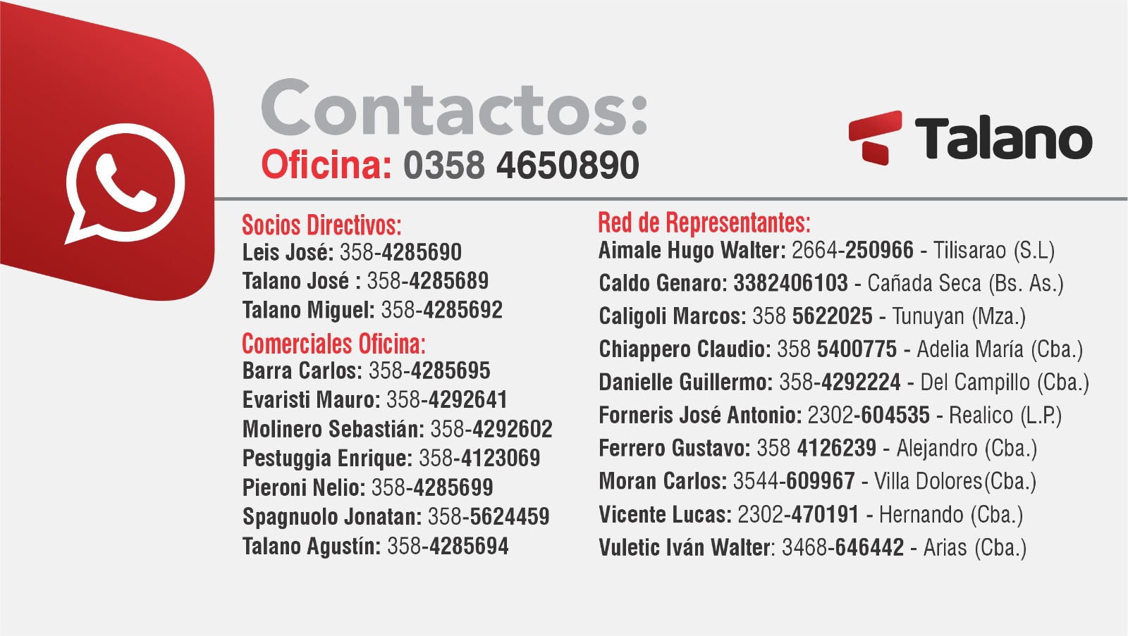 (+54) 358- 4650890 / 0800 888 0070 | consignataria@talanohnos.com.ar